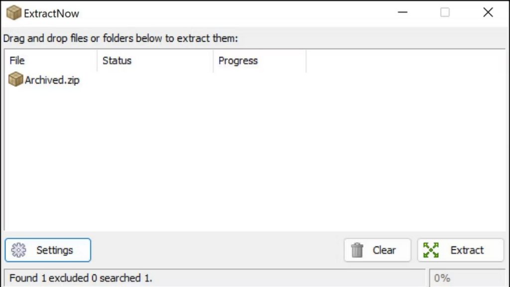ExtractNow è di gran lunga il software di archiviazione più leggero. Occupa solo 4,4 MB di spazio su disco dopo l'installazione. Prende un approccio minimalista con la sua semplice interfaccia utente. Supporta tutti i principali formati di archivio e consente di estrarre più file contemporaneamente. L'interfaccia utente ha anche il supporto multilingue. ExtractNow può anche scansionare le cartelle alla ricerca di archivi ed estrarle automaticamente.