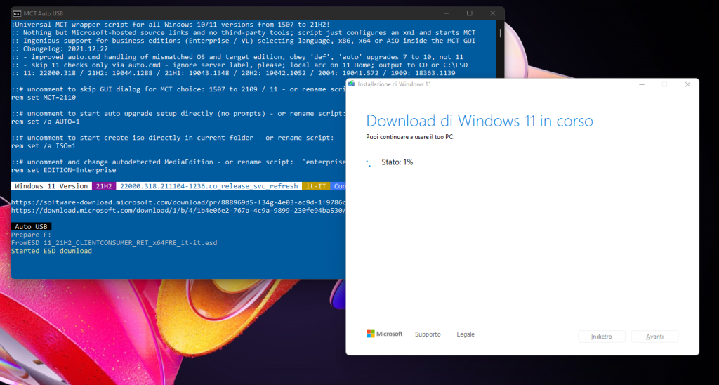 Dopo aver cliccato avanti nella schermata precedente, il processo di scaricamento e l'installazione di windows 11 sulla chiavetta avrà inizio. Le tempistiche possono variare in base alle prestazione rete/pc.