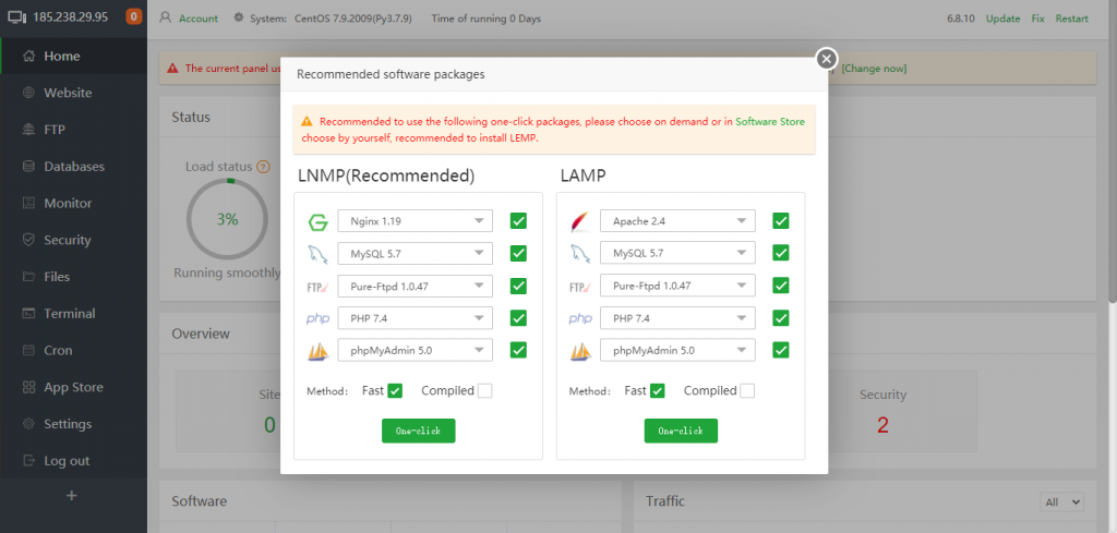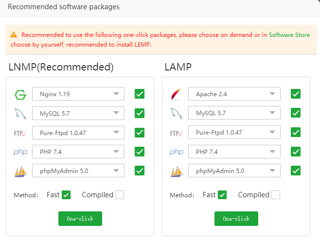 E raccomandato utilizzare LNMP, per ottimizzare il vostro web panel. Si consiglia di selezione Complied per impostare la configurazione.