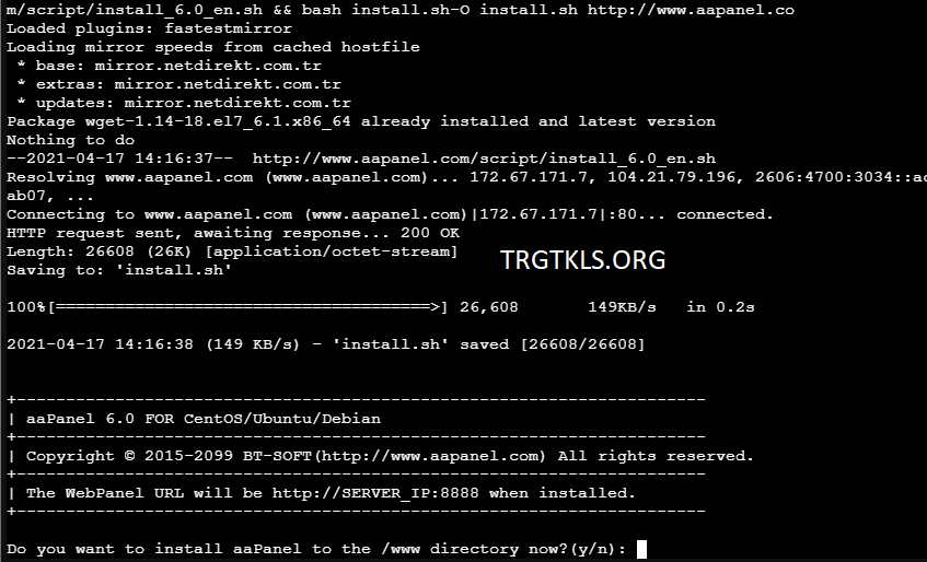 yum install -y wget && wget -O install.sh http://www.aapanel.com/script/install_6.0_en.sh && bash install.sh