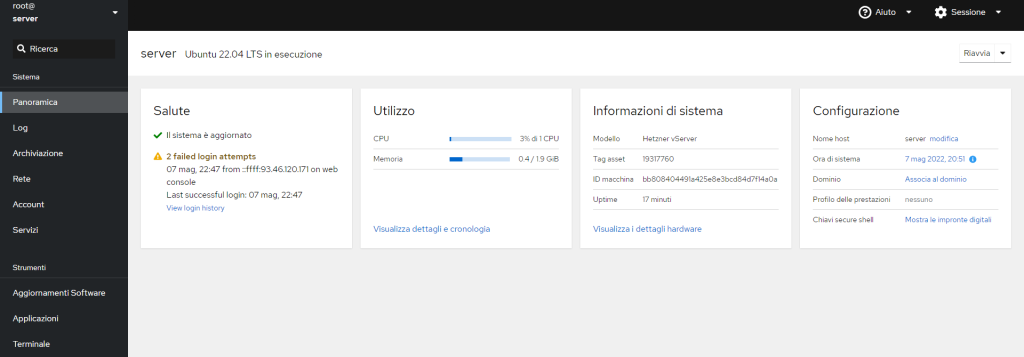 installa Cockpit su Ubuntu 22.04 con il comando