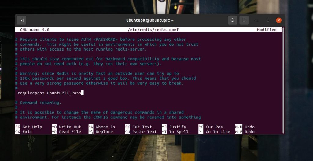 Quando lo script si apre, trova la sintassi requirepass e fallo decommentare rimuovendo l'hash (#). Quindi sostituisci la parola foobared con la password desiderata.