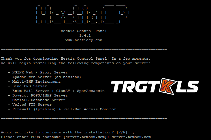 DIgitare Y per confermare l'installazione per poi inserire hostname del server. L'installazione sarà avviato e richiederà circa 15 minuti. durante l'installazione al tuo server verranno installati le seguenti applicazioni: