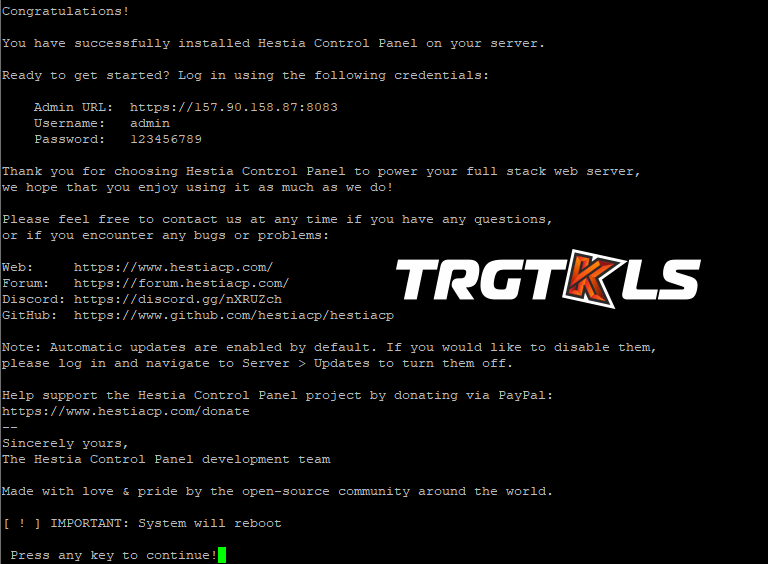 Sito ufficiale: https://hestiacp.com