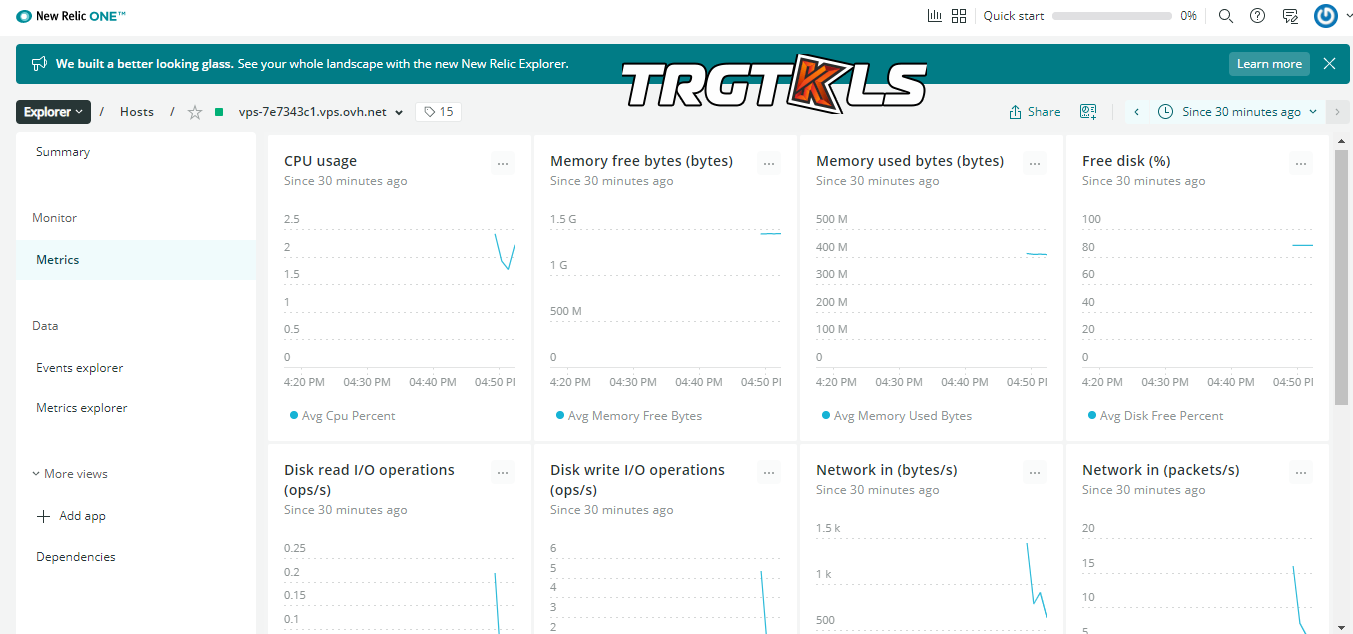 New Relic è una delle applicazioni di monitoraggio basate sul Web più popolari che monitora le prestazioni del server in tempo reale. Viene utilizzato dalle società di web hosting per il monitoraggio delle risorse e della rete, inclusi CPU, RAM, utilizzo del disco ed eventi specifici definiti dall'utente.