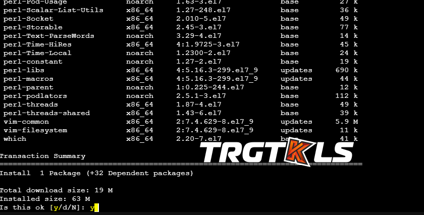 Da qui, premi Y per aggiornare o scaricare "Vim".