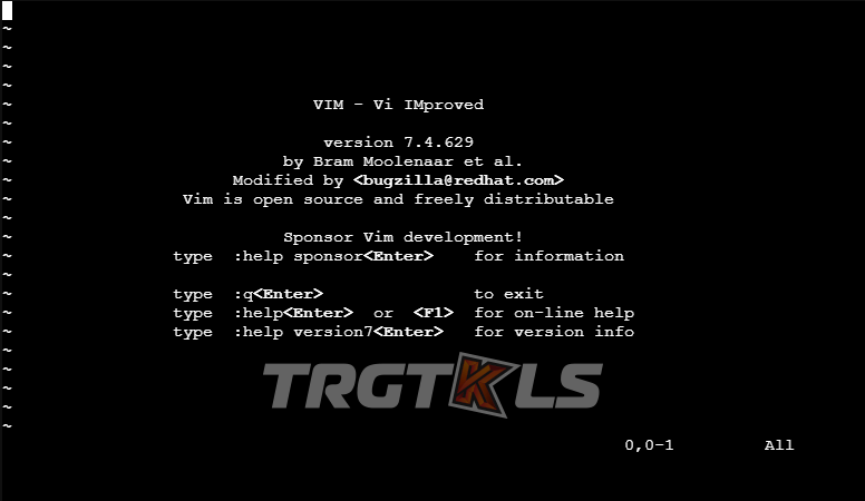 Dopo l'esecuzione, alcuni screenshot qui sotto sarà d'aiuto per voi. La maggior parte degli utenti ha rinunciato a usare vim perché non riusciva nemmeno a trovare l'uscita da questa prima schermata iniziale.