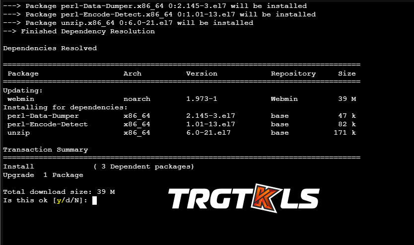 Infine, installa Webmin e tutte le dipendenze utilizzando il seguente comando di sopra: