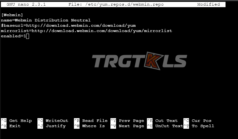 Un altro modo per installare Webmin è utilizzare il repository YUM ufficiale. Innanzitutto, installiamo nano e creiamo un file webmin.repo:
