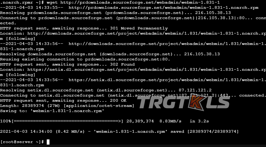 # wget http://prdownloads.sourceforge.net/webadmin/webmin-1.831-1.noarch.rpm