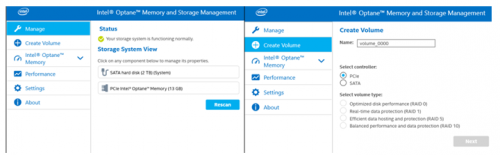 Memoria Intel Optane e gestione dello storage