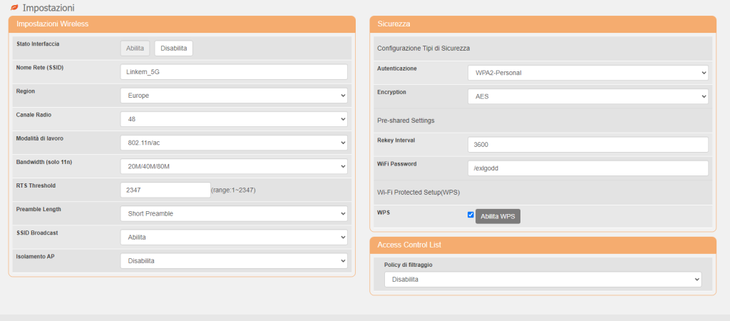 Le impostazioni possono variare a seconda della connessione che si utilizza, ad esempio se 2.4 ghz o 5Ghz. Potresti avere un dispositivo per connetterti ad internet che non supporta la banda 5ghz, quindi potresti provare a settare tale impostazioni sulla banda a 2.4Ghz. Se stai utilizzando un solo dispositivo in casa dovresti assolutamente impostare Preamble Length che si trova nella banda a 2.4Ghz in Short Preamble. Per sapere di più sul Preamble dai un'occhiata al nostro articolo.