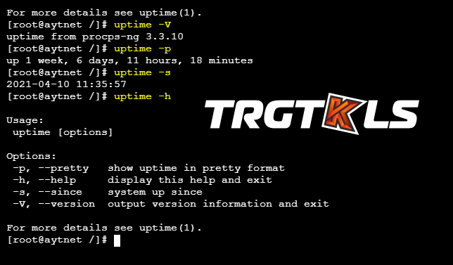 Se sei un principiante di Linux e hai interesse per l'amministrazione del sistema o vuoi diventare un utente esperto, allora devi avere una solida conoscenza delle righe di comando. Ci sono diversi comandi che dovresti conoscere e uno di questi è il tempo di attività cioè Uptime. Questo comando restituisce una serie di valori che coinvolgono, l'ora corrente e la quantità di tempo in cui il sistema è in esecuzione, il numero di utenti attualmente connessi e il tempo di caricamento rispettivamente degli ultimi 1, 5 e 15 minuti.
