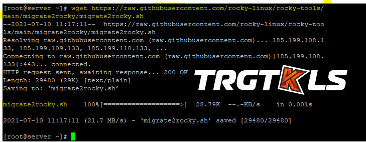 wget https://raw.githubusercontent.com/rocky-linux/rocky-tools/main/migrate2rocky/migrate2rocky.sh