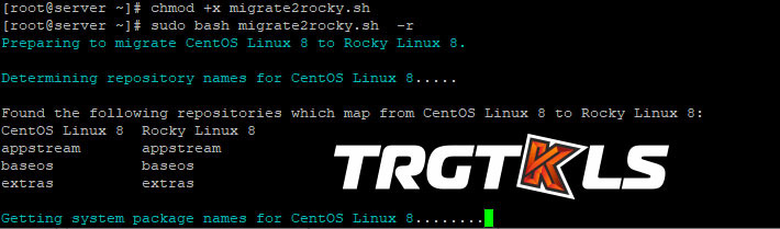 Ora siamo pronti per migrare a Rocky Linux. Per avviare la migrazione da CentOS 8 a Rocky Linux, esegui il comando: