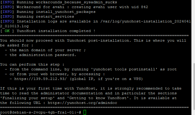 Una volta completata l'installazione, accedi al tuo YunoHost utilizzando il tuo indirizzo IP.