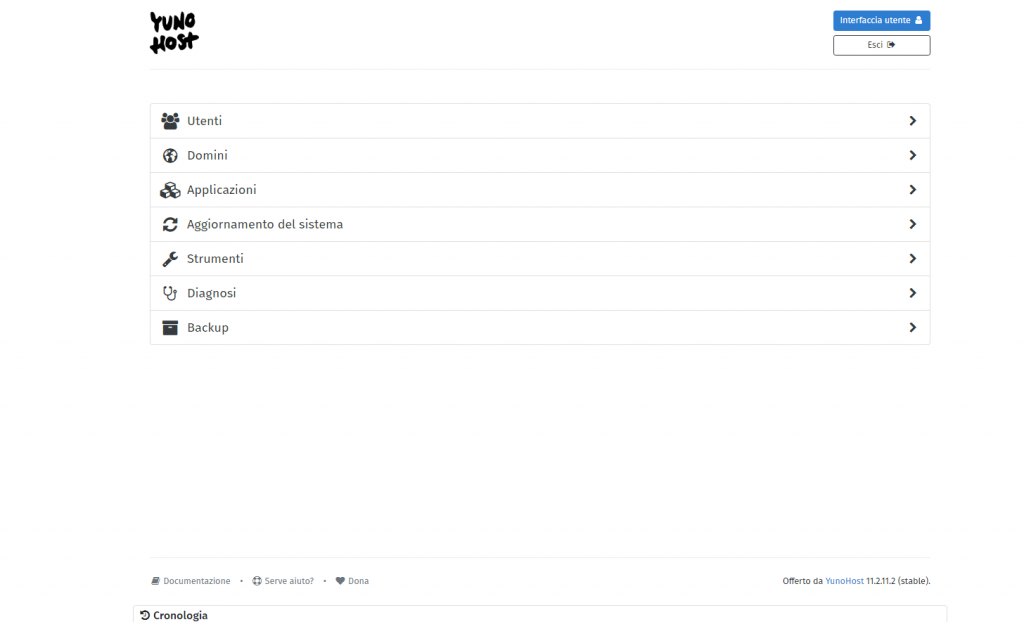 Ora hai YunoHost in esecuzione senza utilizzare cPanel!