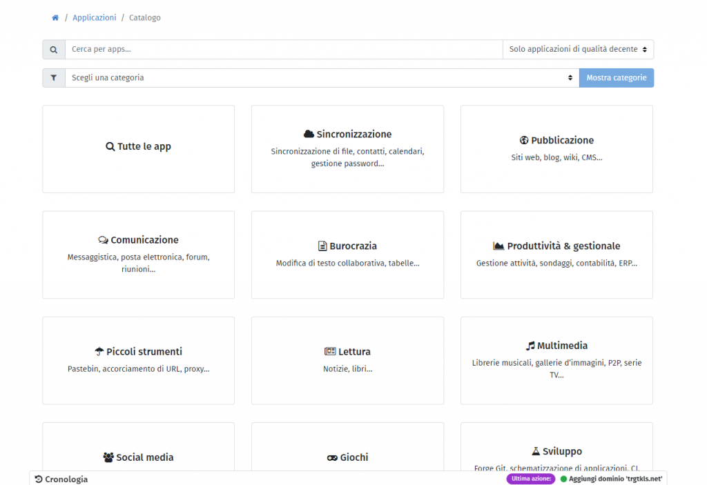 Il tuo pannello di controllo amministrativo. Qui puoi installare le tue applicazioni preferite.