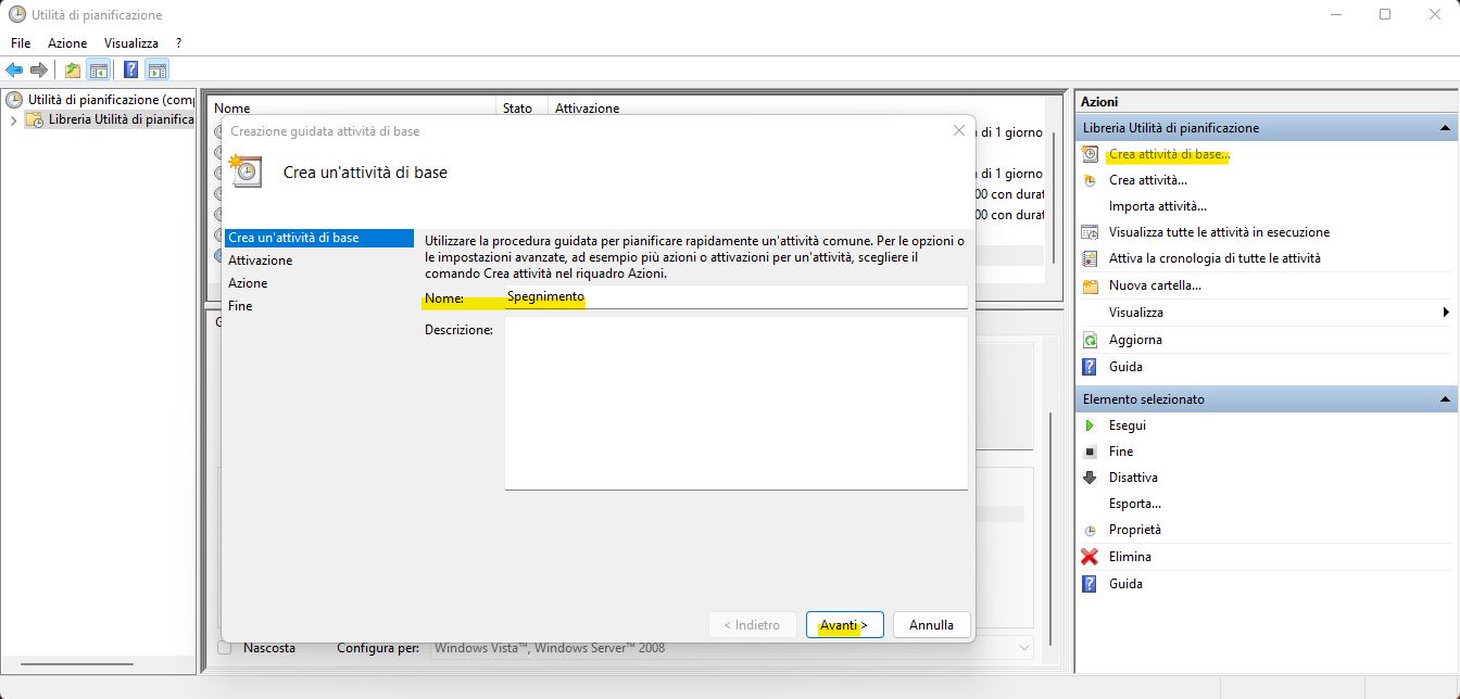 - Digita il nome per l'attività e clicca Avanti