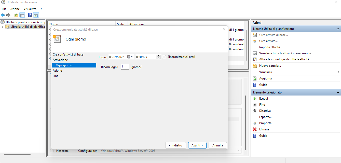 - Selezionare Giornaliero per impostare lo spegnimento automatico per ogni giorno e digita l'orario di avvio dell'attività poi clicca Avanti