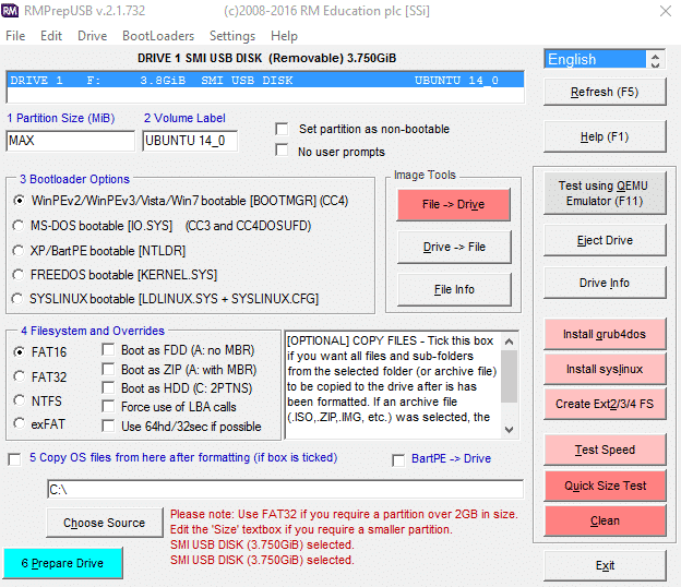 RMPrepUSB a differenza di Rufus, questo software richiede di eseguire l'installazione per installarlo. Il processo di installazione è rapido e crea automaticamente un collegamento sul desktop. La parte migliore di questo strumento è che viene aggiornato regolarmente. Ora diamo un'occhiata alle sue altre specifiche.