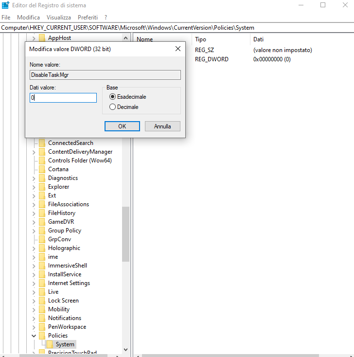 - Passaggio 4: qui vai a HKEY_CURRENT_USERSoftwareMicrosoftWindowsCurrentVersionPoliciesSystem
