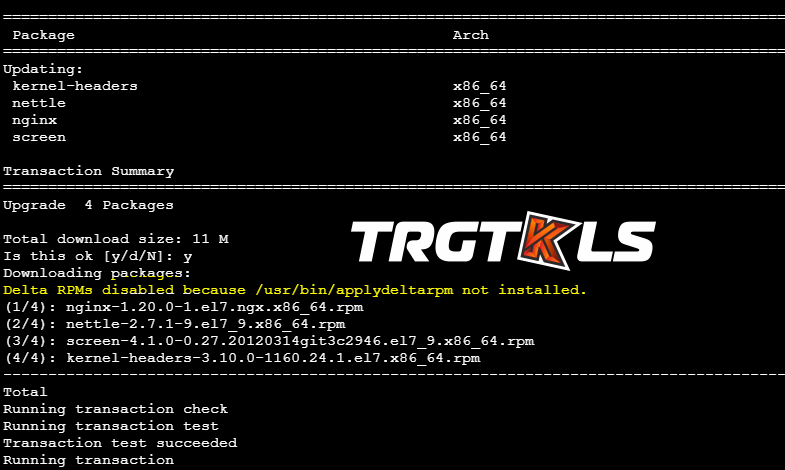 Veniamo al sodo, ecco l'errore: Delta RPMs disabled because /usr/bin/applydeltarpm not installed.