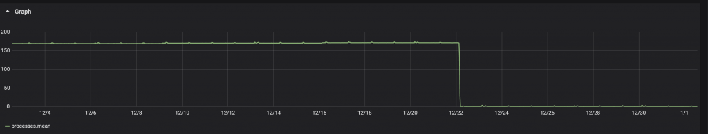 Un esempio di carico elevato della CPU sul nostro sistema di produzione. Il carico è passato a 170 per un server. Le vCPU totali per questo server sono 64.