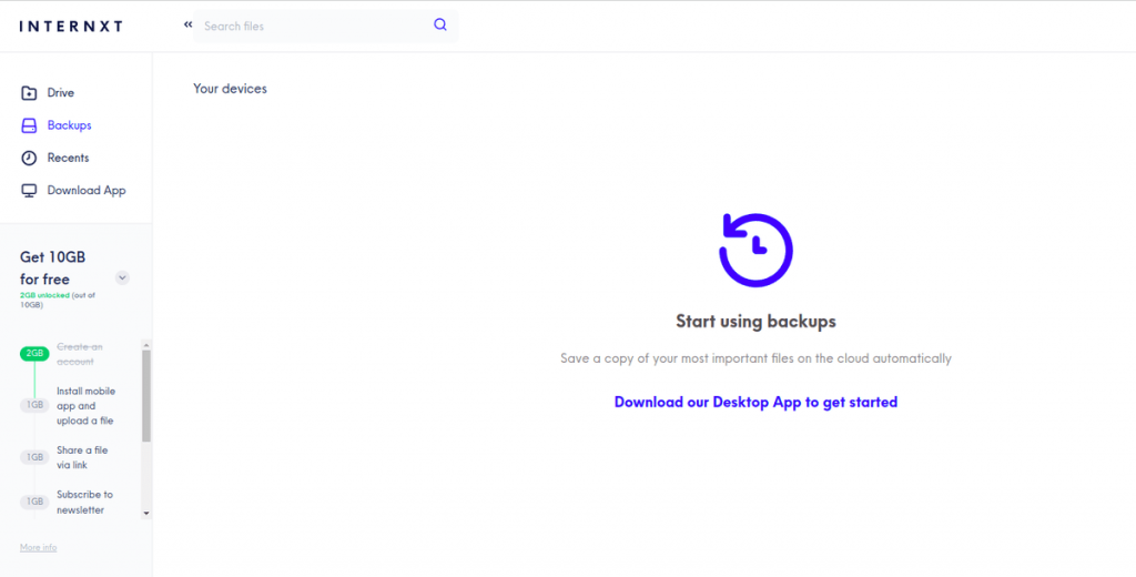 - Internxt è dotato di un'interfaccia ben progettata e minimalista.