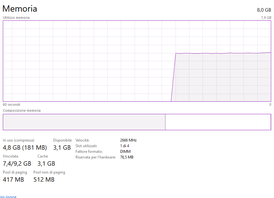 Ciò significa che il PC rallenterà fino a quando il sistema operativo non sposta nuovamente i processi sulla RAM fisica.