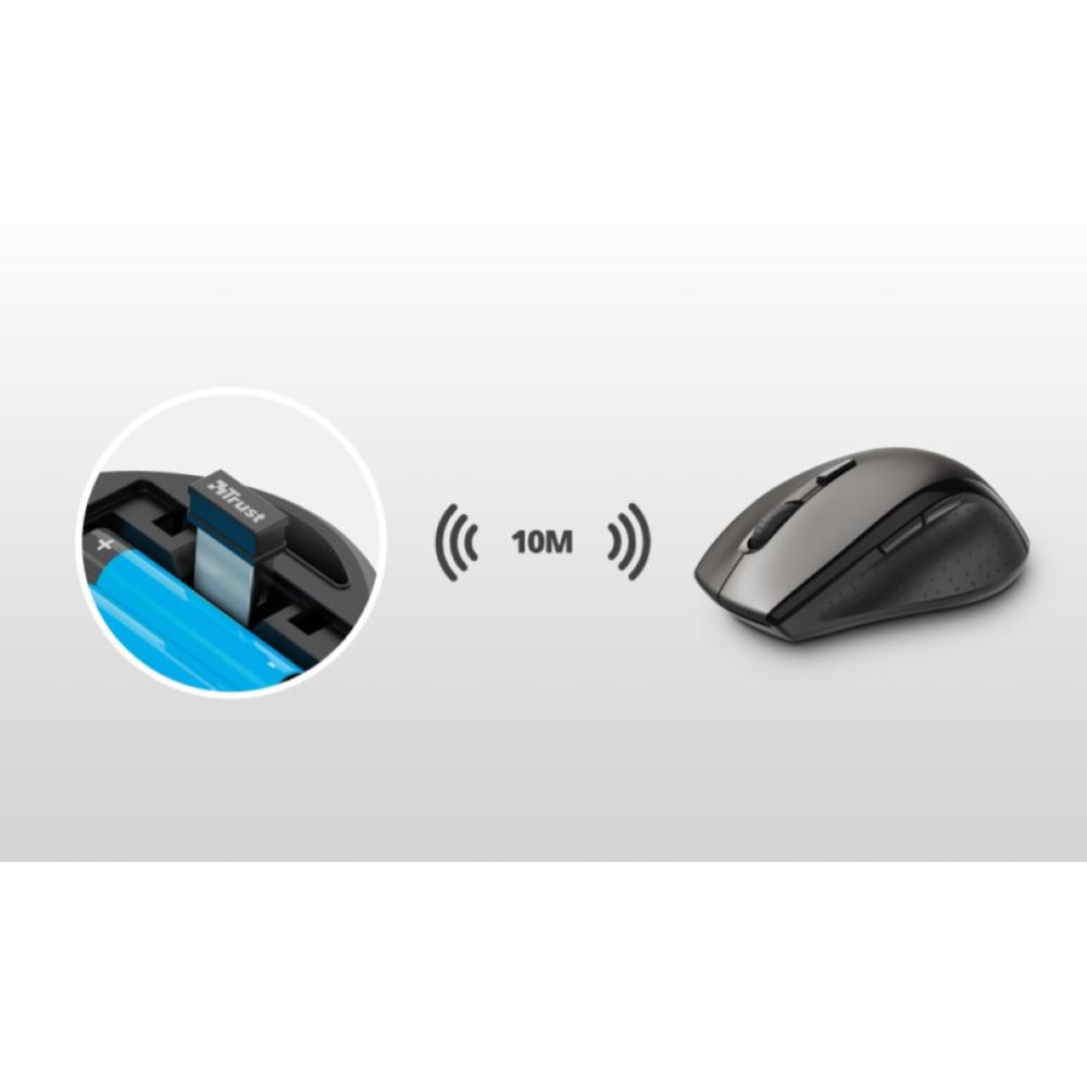 La distanza massima (portata) tra il mouse e il ricevitore per la comunicazione tra loro varia a seconda del prodotto, ma spesso raggiunge i 10 metri. Poiché non dispongono di cavi, i mouse wireless devono essere alimentati da batterie o batterie ricaricabili. Il ricevitore non necessita di questo componente poiché è alimentato dal computer stesso.