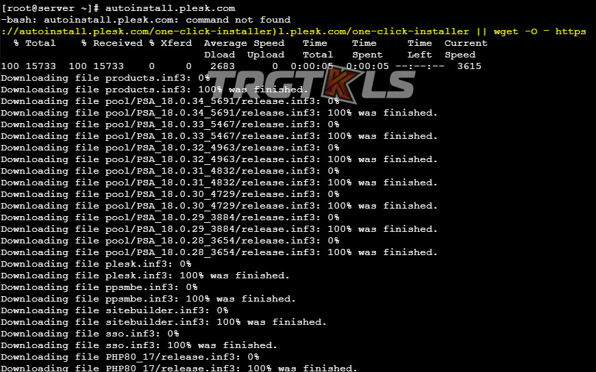 Dopo il completamento dell'installazione dell'utility wget richiamiamo plesk per l'installazione.