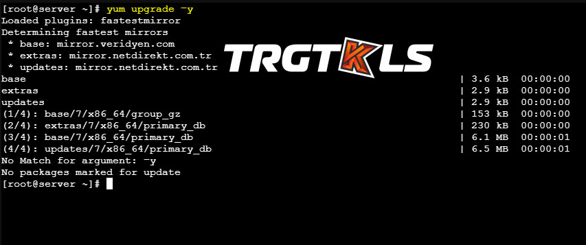 Dopo l'accesso, esegui prima gli aggiornamenti dei servizi sul tuo server con il comando "yum upgrade -y" (virgolette escluse).