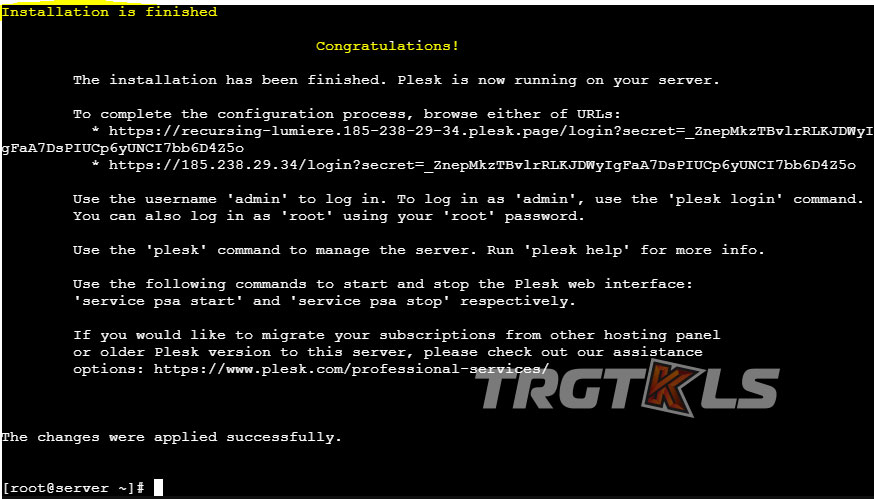 Con il comando inserito, l'ultima versione verrà installata sul sito di Plesk Panel. Questo processo potrebbe richiedere 20-30 minuti.