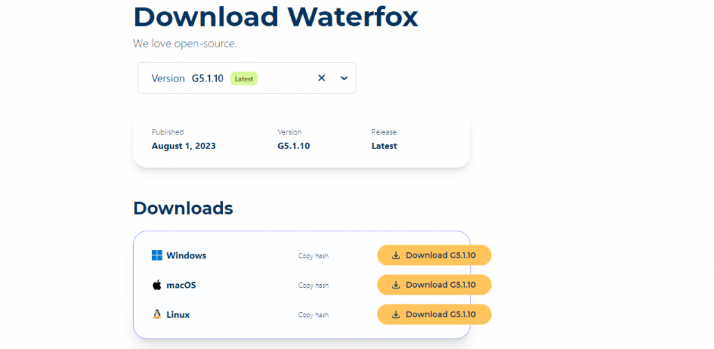 Waterfox si scarica e si installa ancora rapidamente. Il sito web è stato complessivamente semplificato. È molto più semplice trovare informazioni pertinenti e scaricare la versione appropriata di Waterfox.