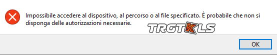 Errore: Windows non può accedere al dispositivo, al percorso o al file specificato. Potrebbe non disporre dell'autorizzazione appropriata per accedere all'elemento.