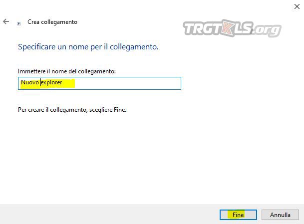 Nella schermata successiva, assegna alla nuova scorciatoia il nome che preferisci e fai clic su Fine.