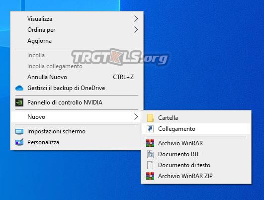 Fai clic con il pulsante destro del mouse su uno spazio vuoto sul desktop, espandere Nuovo e quindi fare clic su Collegamento.