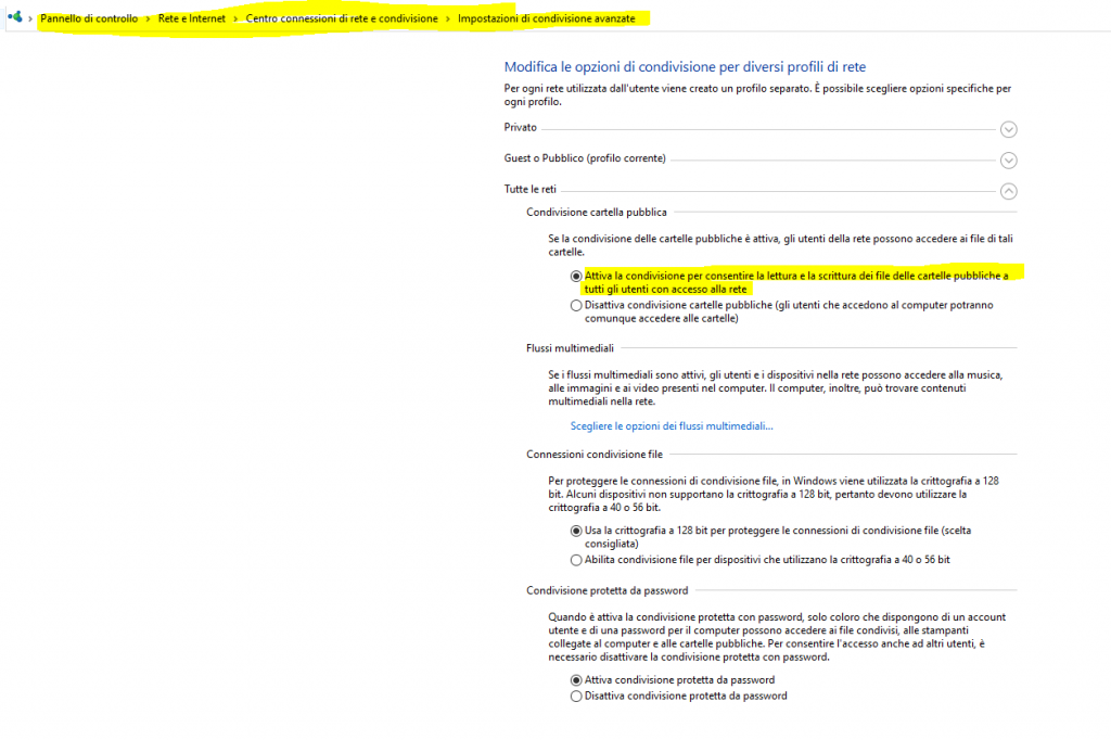 Segui questi passaggi per "Attivare" la condivisione della cartella pubblica su Windows 10: